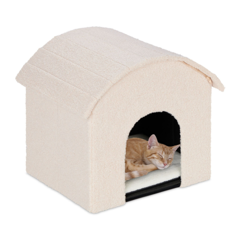 Bézs házikó alakú macskabarlang karcoló felülettel Ezzel az ennivaló állatbarlanggal kényelmes elvonulást kínál macskájának, ha a lakásban a mindennapi nyüzsgés túlságosan megterhelővé válik. A levehető párnának köszönhetően a macskaház különösen puha és