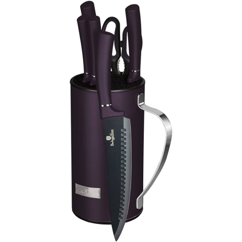 Berlinger Haus Purple Eclipse Collection 7 részes rozsdamentes acélból készült, tapadásmentes bevonatú késkészlet. A kések nyele puha tapintású, ergonomikus és nem csúszik, használata teljesen biztonságos. A pengék nem őrzik meg az ételek szagát, nem f