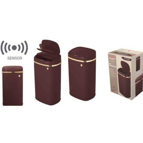 A Leonardo Collection szenzor érzékelős kuka (58 L) egy modern és praktikus választás a mindennapi szemétkezeléshez. A matt bordó színű, vasból készült kuka 67*39,5*28 cm méretével és 58 literes űrtartalmával ideális választás nagyobb családok vagy irodák