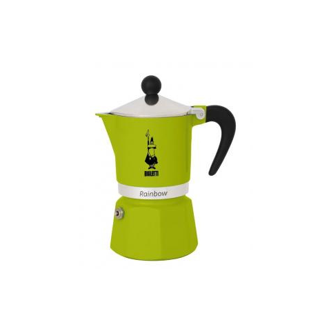Bialetti Kávéfõzõ 1 adagos zöld Rainbow 4971 Tegye színesebbé a kávészüneteket! A Bialetti a Rainbow sorozattal gondolt a színes konyhák szerelmeseire és a vidám, élénk színeket kedvelõkre is. A színeknek köszönhetõen a Rainbow kávéfõzõkkel a minõségi kávé elkészítése különleges, vidám élménnyé válik. A készülék a Bialetti által szabadalmaztatott, egyszerûen tisztítható biztonsági szeleppel, és hõszigetelõ, ergonomikus, puha tapintású szi