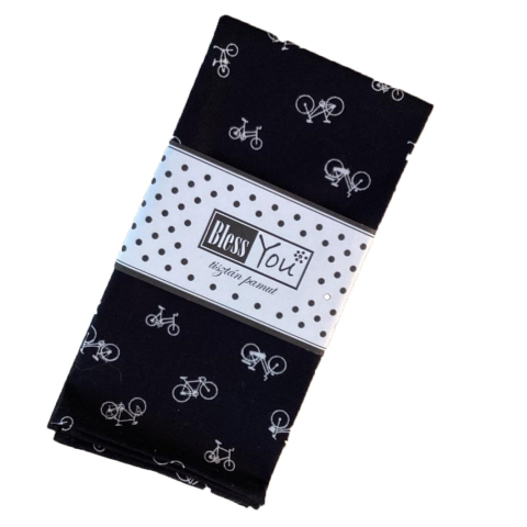 Biciklis textil szalvétaA textilszalvéták különleges, ötletes és egyedi díszei az asztalnak, használatuk egyben igen környezetbarát és pénztárcakímélő megoldás is. Nem kell minden használat után szemétbe dobni és újat venni, mint a papírszalvétából. Ugyanúgy használhatod étkezés közben, vagy szendvics csomagolására.A szalvéták mérete 33x33 cm. 100% pamutból készültek, mosógépben 40 fokon moshatóak, vasalhatóak.
