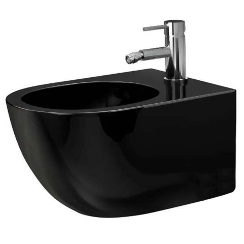 Carlo Bidé Mini - Elegáns, fekete, falra szerelhető bidé Ez a Carlo Bidé Mini egy stílusos és praktikus megoldás a fürdőszobába. A fényes fekete kerámia kivitel modern megjelenést kölcsönöz, miközben a kompakt mérete helytakarékos megoldást kínál. El...