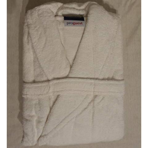 Termékjellemzők: - Billerbeck ProGuest prémium minőségű köntös. - Sálgalléros kivitelben. - Fehér színben. - Anyagösszetétel: 100 % pamut, finom, frottír anyagból. - Mosható termék, 60 fokon mosható. - Anyagminőség: 450 g/nm.