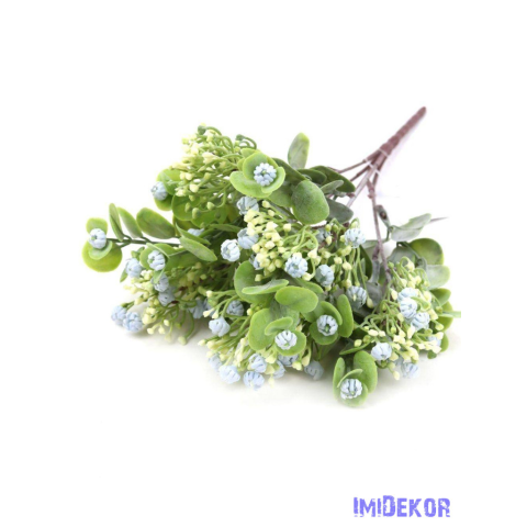 Bimbó virágos bogyós műzöld csokor 31cm 327 - Kék dekorációs kellék 1 kép