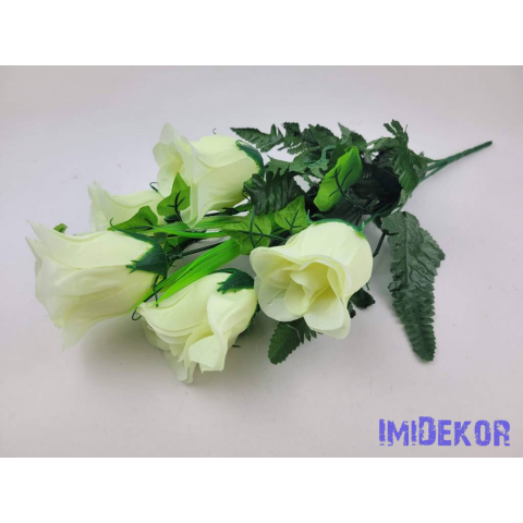 Bimbós rózsa 5 ágú selyem csokor 43 cm - Törtfehér