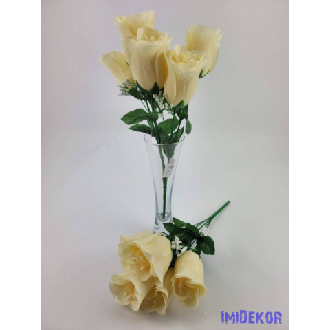 1 kép Bimbós rózsa 5 fejes selyemvirág csokor 32 cm - Vaj