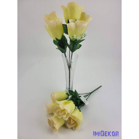 1 kép Bimbós rózsa 5 fejes selyemvirág csokor 32 cm - Zöldes Krém