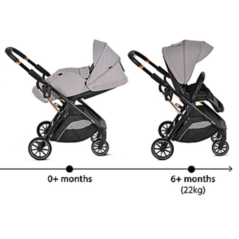 1 kép BINGO babakocsi 22kg-ig, sport vázzal, összecsukható 2 irányban STEEL/EZÜSTSZÜRKE