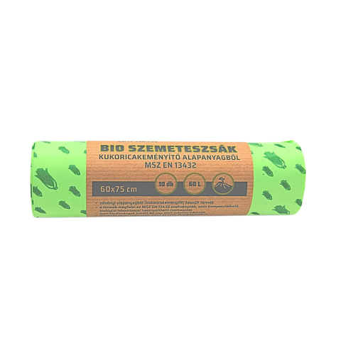 Bio Szemeteszsák - 60 Literes Kukoricakeményítő Alapanyagból 60 x 75 cm 1 tekercs= 10db