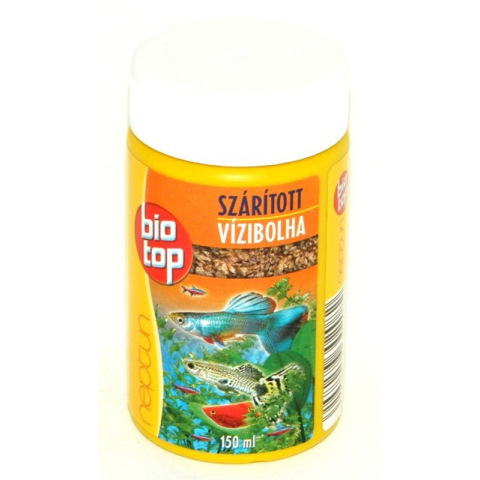 Szárított vizibolha szárítással tartósított természetes haleleség. Magas kitintartalmű hagyományos díszhaltáp kiegészítő etetére.