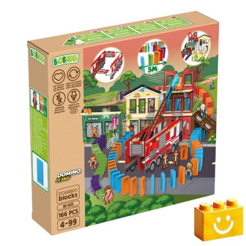 A BiOBUDDi egyedi dominókészleteket fejlesztett ki 4 éves és annál idősebb gyermekek számára. Ez a készlet a „Dominó város”. A gyerekek először megépítenek egy nagy és gyönyörű várost kartonból, majd elkezdik elhelyezni a dominókat, és egy egyedi pályát é