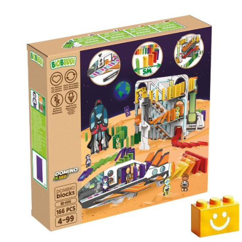 A BiOBUDDi egyedi dominókészleteket fejlesztett ki 4 éves és annál idősebb gyermekek számára. Ez a készlet a „Dominó űr”. A gyerekek először kartondobozból űrközpontot építenek, majd elkezdik elhelyezni a dominókat, és egy egyedi pályát építenek mindenfél