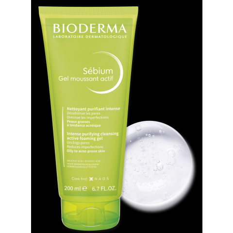 A Sébium Gel moussant actif (aktív habzó gél) szalicilsav és glikolsav tartalmának köszönhetően intenzíven tisztítja a bőrt anélkül, hogy szárítaná azt. A készítmény tiszteletben tartja a bőr természetes egyensúlyát, szabadalmaztatott D.A.F.TM komplex szabadalma pedi