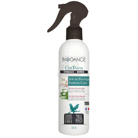 Az Opti’Plum ápoló spray aloe vera, cseresznye virág kivonat és inulin tartalommal hozzájárul a fényes tollazat, valamint az egészséges és hidratált bőr* kialakításához. Segít megvédeni a tollazatot a külső hatásoktól (környezetszennyezés, dohányzás, UV sugárzás, stb) miközben nyugtatja az irritált bőrt. * Hidratálja a bőrszövet legfelső rétegét. Összetétel: Víz, barna moszat (Ascophyllum nodosum), természetes eredetű felületaktív anyagok, Aloe ve