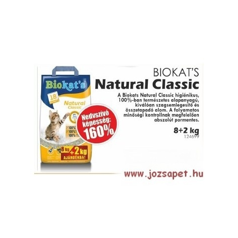 Biokat's Natural Classic macskaalom 5 kg 160%-os nedvszívó képességű, higiénikus, kivállóan szagsemlegesítő, összetapadó, pormentes alom. Egy cicának kb. 18 napra elegendő. Biokat's Natural Classic macskaalom 5 kg 160%-os nedvszívó képességű, higiéniku