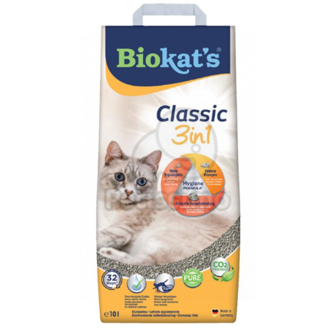 Jellemzők: - A Biokat s Classic 3in1 macskaalom 100%-ban természetes anyagokból készült. - Használatával az alom hosszú ideig friss és higiénikusan tiszta marad. - Három különböző szemcsemérettel segít elnyelni a folyadékot és a szagokat. - Különösen jó csomósodási képességgel. - A macskaalom helyes használatának és maximális teljesítményének biztosítása érdekében javasoljuk, hogy az alomdobozba öntve gondoskodjon a granulátum egyenletes elosztásáról.