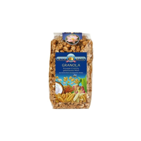 Bioking Bio Pirított Ropogós Müzli 375 g Termék leírása: Zabpehely*, Nádcukor*, Pálmaolaj*, 12% Mogyoró*, Kókuszreszelék*, Búzapehely*, Teljes (nyers) nádcukor*, 6% Kakaópor*, Puffasztott búza mézes*, (puffasztott búza*, nádcukor*, búza glükóz-fruktóz s