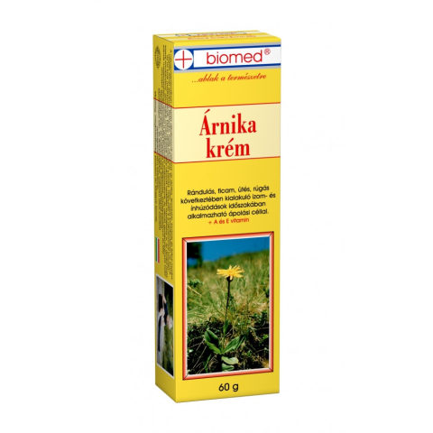 Biomed Árnika Krém 60 g Az árnika a legismertebb és legnépszerűbb gyógynövények közé tartozik. 'Hatóanyagai tágítják a hajszálereket és vérbőséget okoznak, így gyors gyulladás- és fájdalomcsökkentő hatással rendelkeznek. ' Krémünk különösen hatásos külön