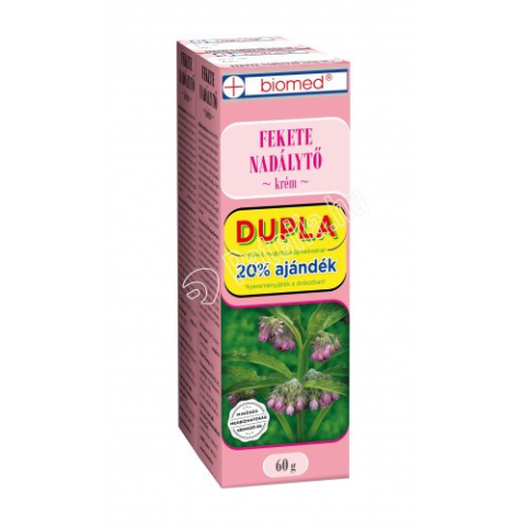Biomed Fekete nadálytő krém dupla 2 x 60 gA krémet problémaek, esések során szerzett véraláfutások, illetve vérömlenyek felszívódásának elősegítésére, csonttörések utáni kezelések kiegészítőjeként ajánljuk bőrápolási céllal. 18% gyógynövény kivonat-tartal