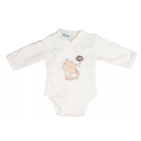 Biopamut elöl patentos hosszú ujjú baba kombidresz (56) - cica