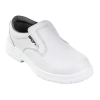 Bebújós félcipő fehér orrmerevítő nélkül cikkszáma: BIRDI A BIRDI bebújós félcipő a EN ISO 20345 : 2011, EN ISO 20347 szabvány szerint készül. Folyadékoknak jobban ellenálló, fehér, mikroszálas felsőrész. Kiváló szellőző és vízgőzáteresztő tulajdonság