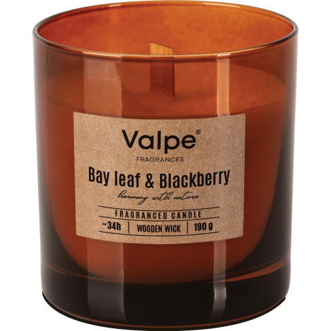1 kép Bispol Valpe illatgyertya fakanóccal babérlevél és szeder 8,5 cm