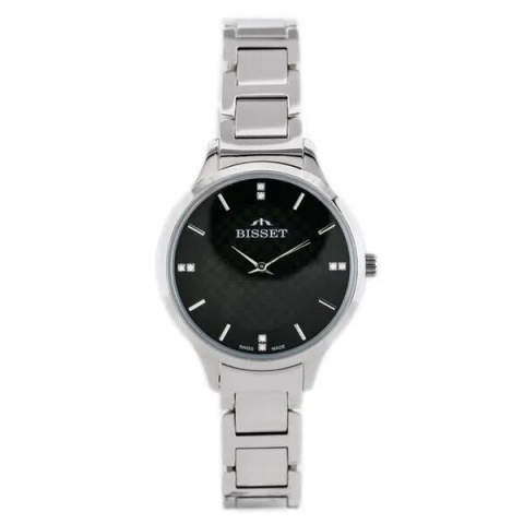 BISSET BSBE45 női karóra, ezüst nemesacél, fekete számlap, 34 mm karóra termékleírás