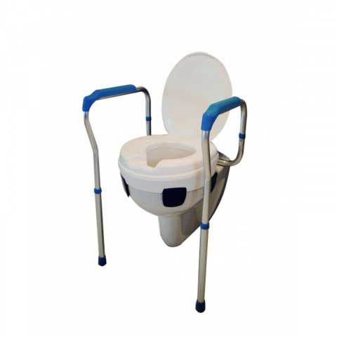 Könnyű alumínium váz, állítási lehetőséggel és két párnázott kartámasszal. Konzolos kialakításának köszönhetően biztonságosan rögzíthető a wc csészéhez. Magassága állítható a wc kagyló magasságának megfelelően 67cm-76,5cm között. Szélessége állítható 51cm