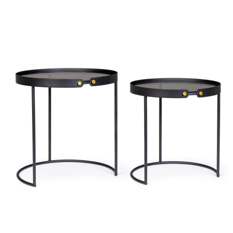 Bizzotto Zeina Round Üveglapos Dohányzóasztal Szett Fekete Arany Díszítéssel bútor termékleírás