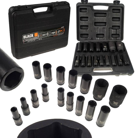 A Black 17 db-os gépi dugókulcs készlet pedig 10 millimétertől 27 mi