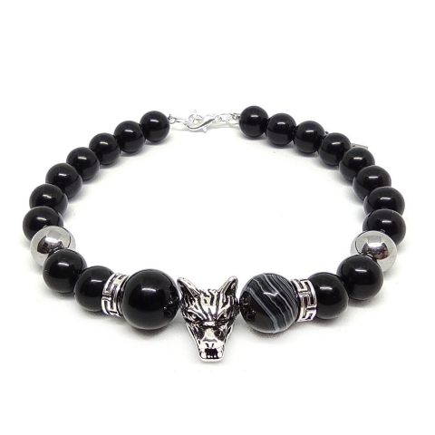 1 kép Black Hunter – Farkasos Csíkos Achát és Jade ásvány karkötő több méretben, ajándékdobozban