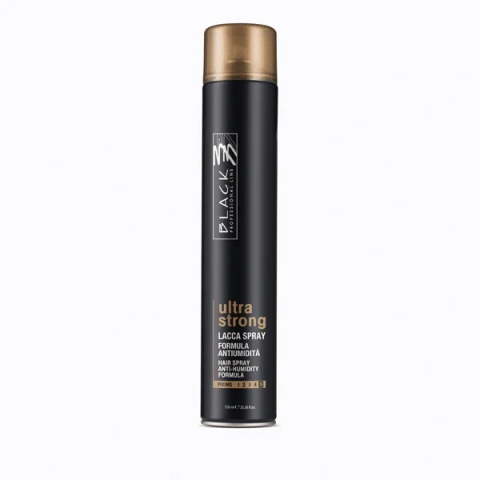 Black Ultra Strong Hair Spray 500ml Ultra erős hajlakk Professzinális hajlakk, ultra erős. Száradás után nem hagy a hajban maradékot, könnyen kifésülhető.