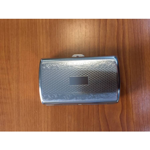 Fényes ezüstszínű tárca, 20 db cigaretta fér el benne.