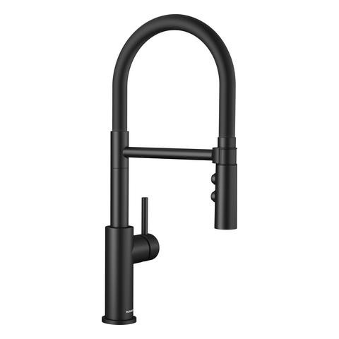 BLANCO CATRIS-S Flexo matt fekete HD Klasszikus vonalak félprofesszionális formatervezéssel és igényes kialakítással A rugalmas, fekete színű gumitömlő optimális mozgási lehetőséget biztosít Kétállású zuhany, könnyű váltás a normál vízsugár és a zu
