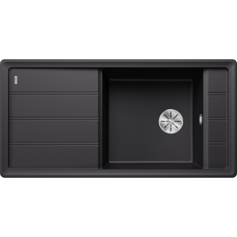 BLANCO FARON XL 6 S fekete exc.nélk. Lefolyógarnitúra helytakarékos csővel, 3 1/2“-os InFino® szűrőkosár Hagyományos stíluselemek modern interpretációja. Finom profilszegély kialakítási jegyként a mosogató peremén és a vágódeszkán. Kettős bordák h
