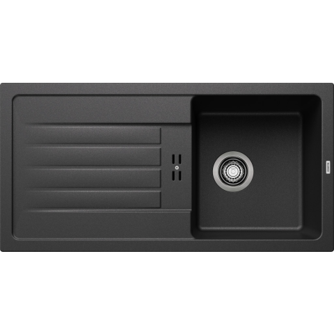 BLANCO FAVUM 45 S antracit exc.nélk Lefolyógarnitúra helytakarékos csővel, 3 1/2-os szűrőkosaras lefolyó Időtlen, funkcionális kialakítás letisztult vonalvezetéssel. Extra nagy medence és méretes csepegtetőfelület integrált túlfolyóval. Szűk meden