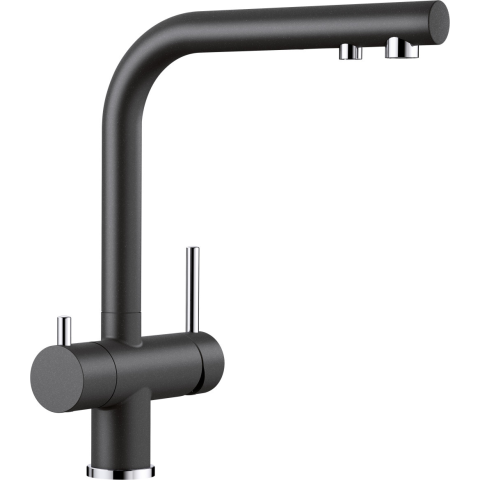 BLANCO FONTAS II antracit HD Kényelmes, 3 az 1-ben csaptelep: a jobb oldali keverőkarral a hideg és meleg vizet lehet szabályozni, a bal oldali karral a szűrt vizet Higiénikus: külön kifolyó a szűrt víz számára – nem keveredik a vezetékes vízzel He