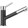 BLANCO KANO-S sil.fekete/króm HD Karcsú csaptelep esztétikus design Kihúzható csapfejjel Különösen alkalmas kompakt mosogatókhoz A 120 fokban elforgatható kifolyó szélesebb körű használhatóságot tesz lehetővé A színes kivitel