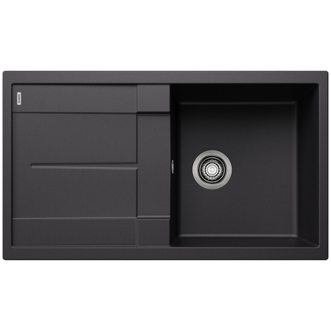 BLANCO METRA 5 S fekete exc.nélk. Lefolyógarnitúra helytakarékos csővel, 3 1/2“-os szűrőkosár Fiatalos, egyenesvonalú kialakítás. Tetszetős darab a kelendő választékban. A különösen nagy és mély főmedencében felülmúlhatatlanul sok hely van a mosog
