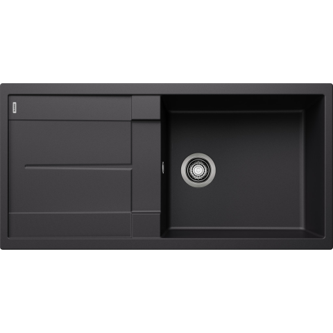 BLANCO METRA XL 6 S fekete exc.nélk. Lefolyógarnitúra helytakarékos csővel, 3 1/2“-os szűrőkosár Fiatalos, egyenes vonalú kialakítás. Vonzó termékcsalád a népszerű szegmensben. A felülmúlhatatlan méretű medence még több helyet biztosít a mosogatás