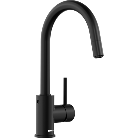 BLANCO MIDA-S matt fekete HD Enyhén hajlított kifolyócső a karcsú csaptesttel. Matt fekete kivitel a környezettel való harmonizálás érdekében. Az edények és vázák könnyű megtöltéséhez. Különösen alkalmas kompakt mosogatókhoz. A 360°-ban elforgath