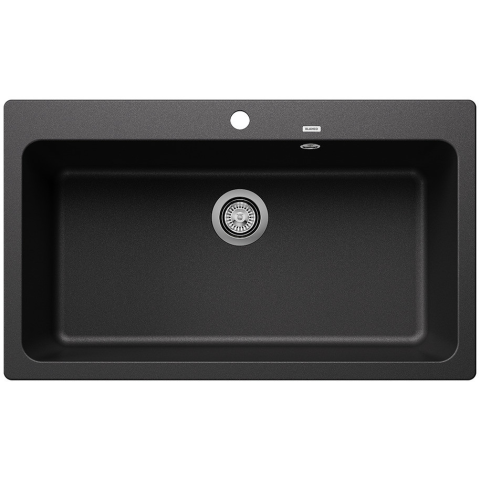 BLANCO NAYA XL 9 antracit tart.n. Lefolyógarnitúra helytakarékos csővel, 3 1/2“-os szűrőkosár Különösen tágas, XL méretű medence biztosít még több helyet a mosogatáshoz. Nagyméretű, markáns profilú csaptelepsáv. Kifejezetten 90 cm-es alsó szekrény