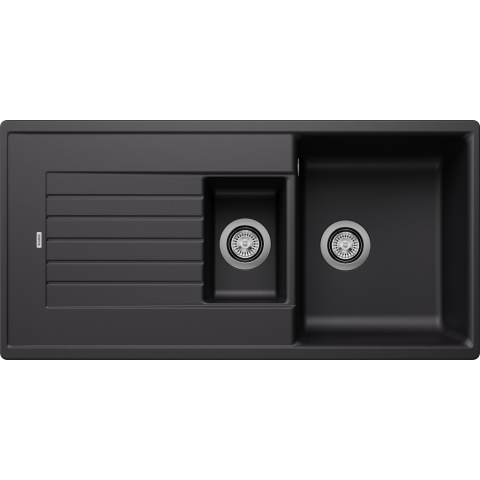BLANCO ZIA 6 S fekete exc.nélk. Lefolyógarnitúra helytakarékos csővel, 2 x 3 1/2’“-os szűrőkosár. Modern dizájn letisztult vonalakkal. Egyenes külső vonalak, hangsúlyos, keskeny kerettel. A jellegzetes csaptelepsáv keretként megnöveli a csepegtető