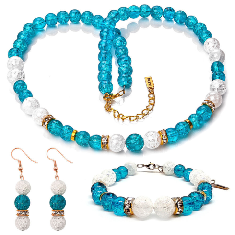 1 kép Blue Sparkle – Kék és fehér hegyikristály exkluzív ásvány ékszerszett (nyaklánc + karkötő + fülbeval