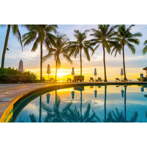 1 kép Blueback MAT Fotótapéta, 300 x 200 cm, Strand medencével és pálmafákkal, 79