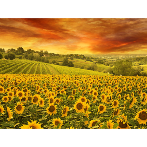 1 kép Blueback MAT Fotótapéta, Naplemente a napraforgók felett, 250 x 200 cm