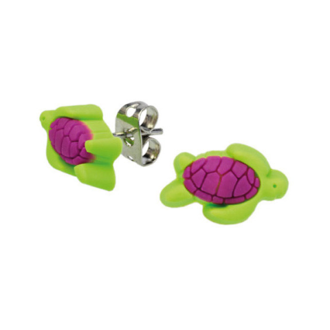 Vidám teknős formájú, színes műanyag fülbevaló gyerekeknek és fiatal felnőtteknek. Könnyű viselet, érzékeny fülre is alkalmas. Tökéletes hétköznapi kiegészítő vagy aranyos ajándék! A BlueBug teknős formájú műanyag fülbevalója tökéletes választás mindaz
