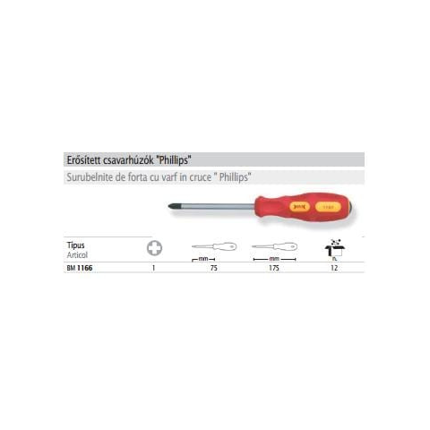 1 kép BM1166 csavarhúzó csillag PH 1000V-ig szigetelt erősített 75x1mm”