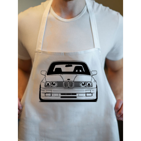 BMW ajándékok, BMW E30 front kötény. Egy igazán különleges autó büszke tulajdonosa vagy, de ha csak álmodozol egy ilyen típusról, akkor ez a kötény tökéletes választás számodra. A kötény fekete és fehér színben is választható a minta színe is ehhez igazod