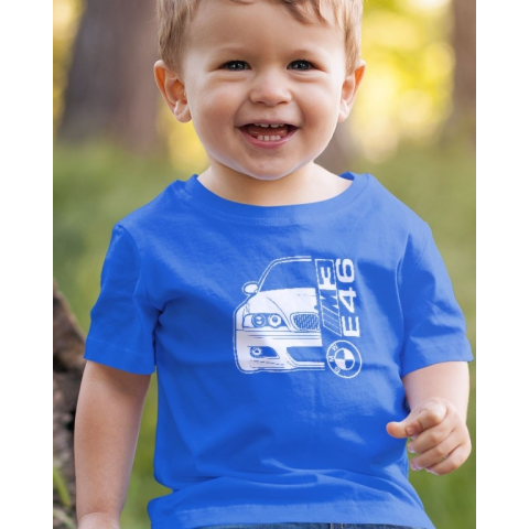 BMW E46 gyerek póló, BMW E46 pólók, a legnagyobb BMW M3 rajongóknak. Ajándék melyet teljesen személyre szabhatsz, hogy az adott autóhoz illeszkedjen. Válassz póló és minta színt is! Minőségi gyerek pólóink ideálisak mindennapi viselethez és ajándéknak